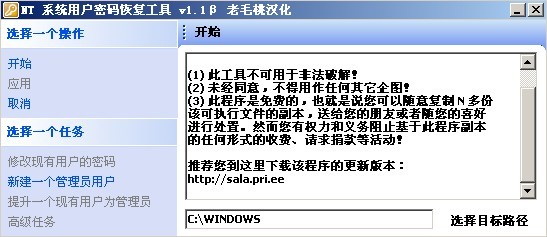 NT 系統用戶密碼恢復工具v1.1 老毛桃漢化版|